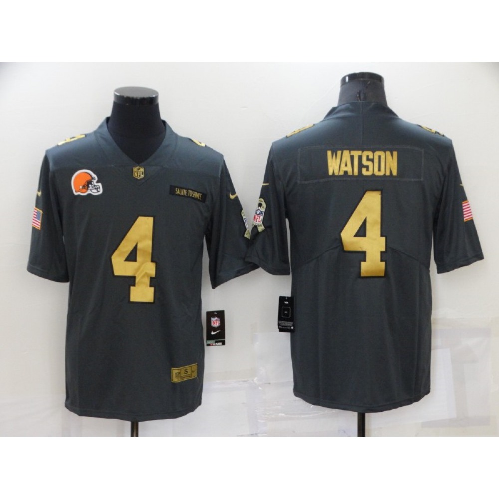 Men's Cleveland Browns #4 Deshaun Watson Grey/Gold Salute To Service Limited Stitched Jersey