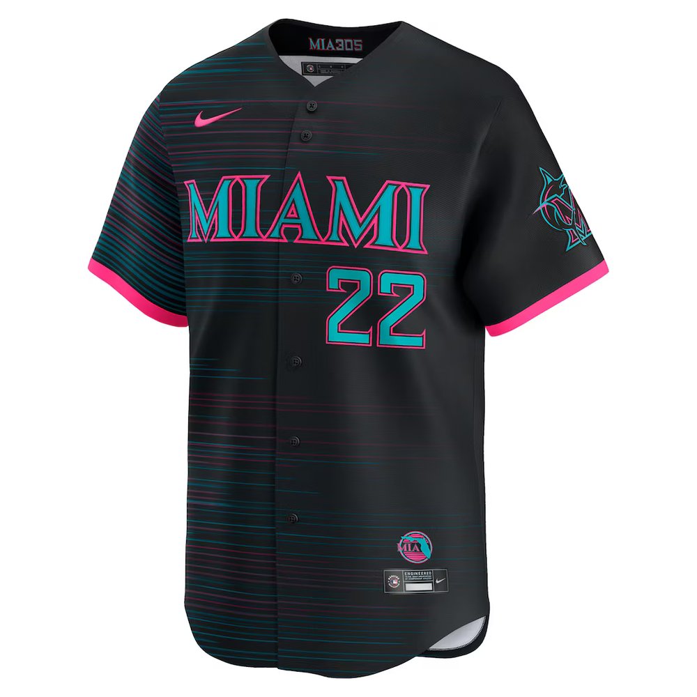 Youth Miami Marlins #22 Sandy Alcantara Nike Black 2025 City Connect Limited Jersey