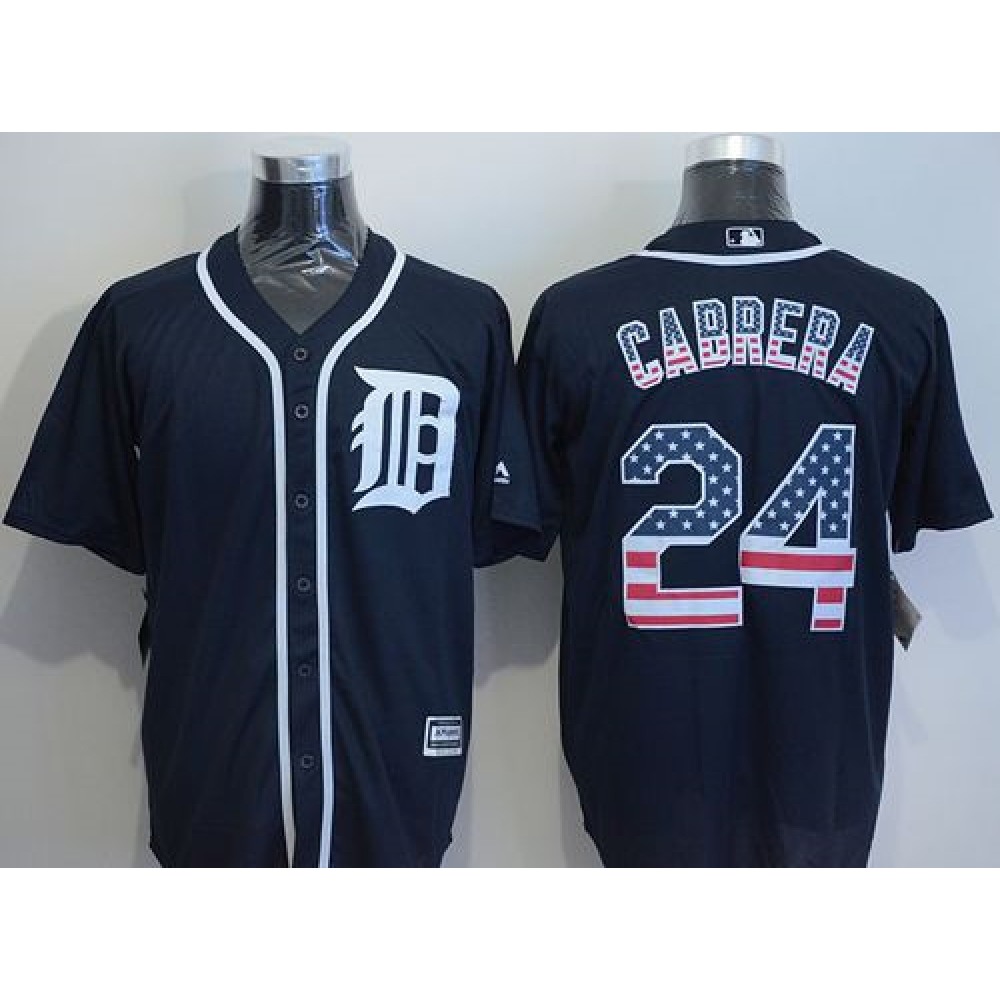 Tigers #24 Miguel Cabrera Navy Blue USA Flag Fashion Stitched MLB Jersey