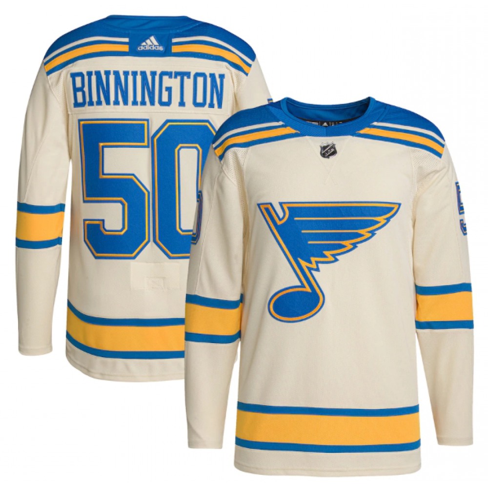 Men's St. Louis Blues #50 Jordan Binnington Cream 2022 Winter Classic Stitched Jersey
