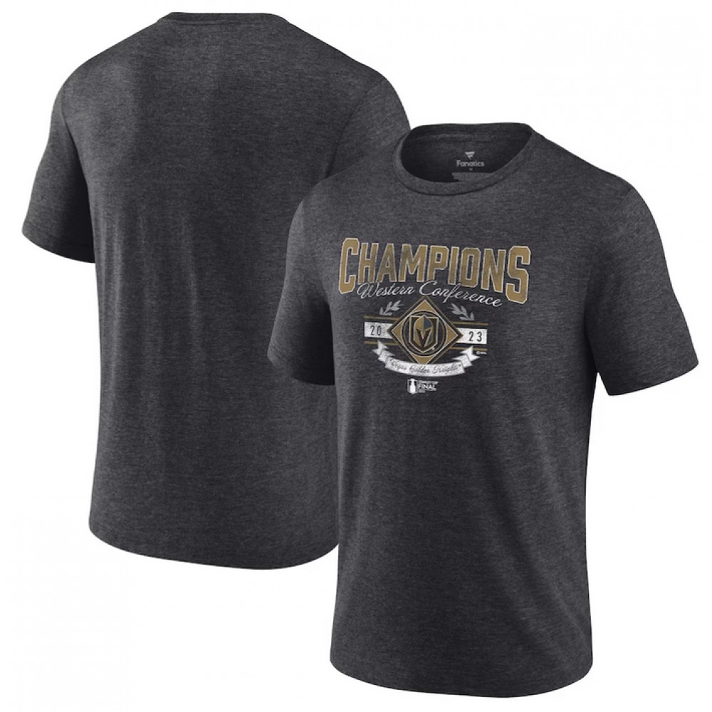Men's Vegas Golden Knights Heather Charcoal 2023 Western Conference Champions Icing Tri-Blend T-Shirt