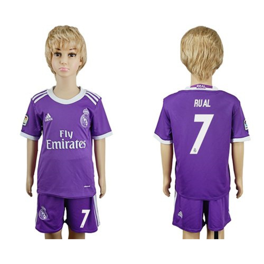 Real Madrid #7 Rual Away Kid Soccer Club Jersey