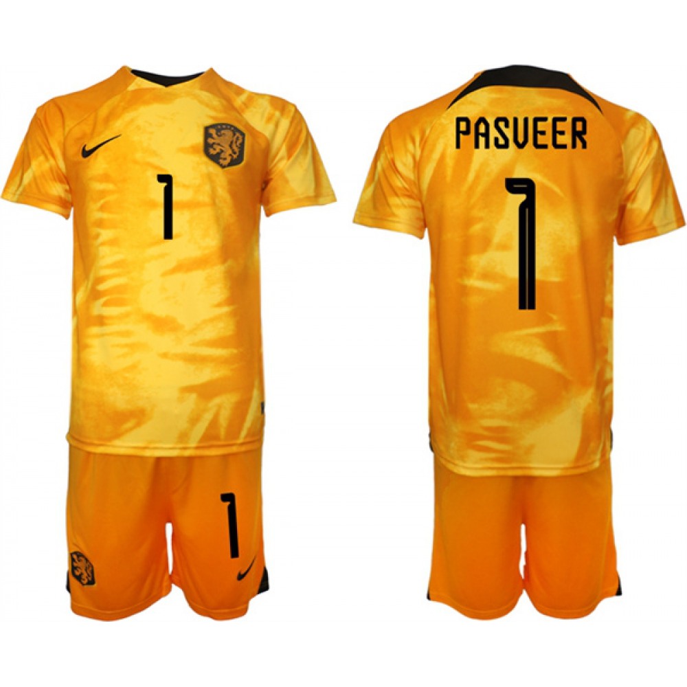 Men's Netherlands #1 Pasveer Orange Home Soccer Jersey Suit