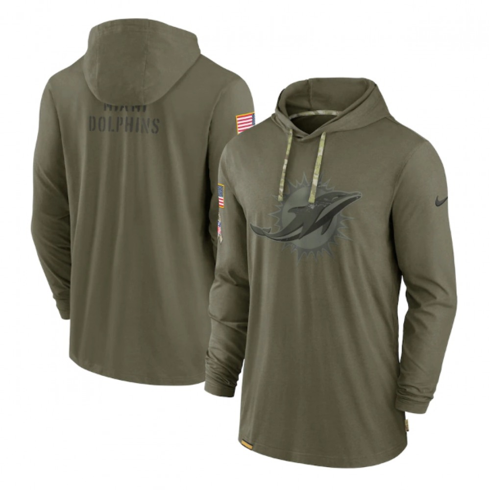 Men's Miami Dolphins 2022 Olive Salute to Service Tonal Pullover Hoodie