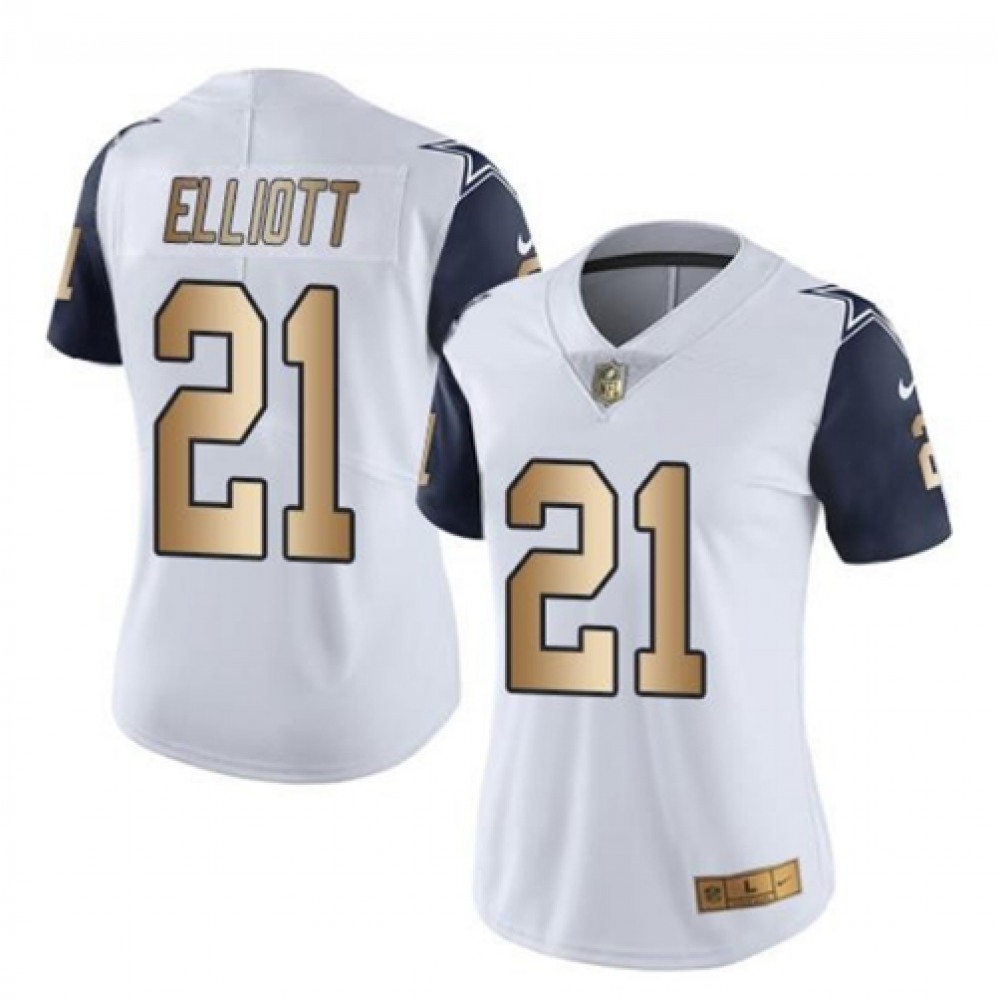 Women's Dallas Cowboys #21 Ezekiel Elliott White Gold Stitched NFL Jersey(Run Small)