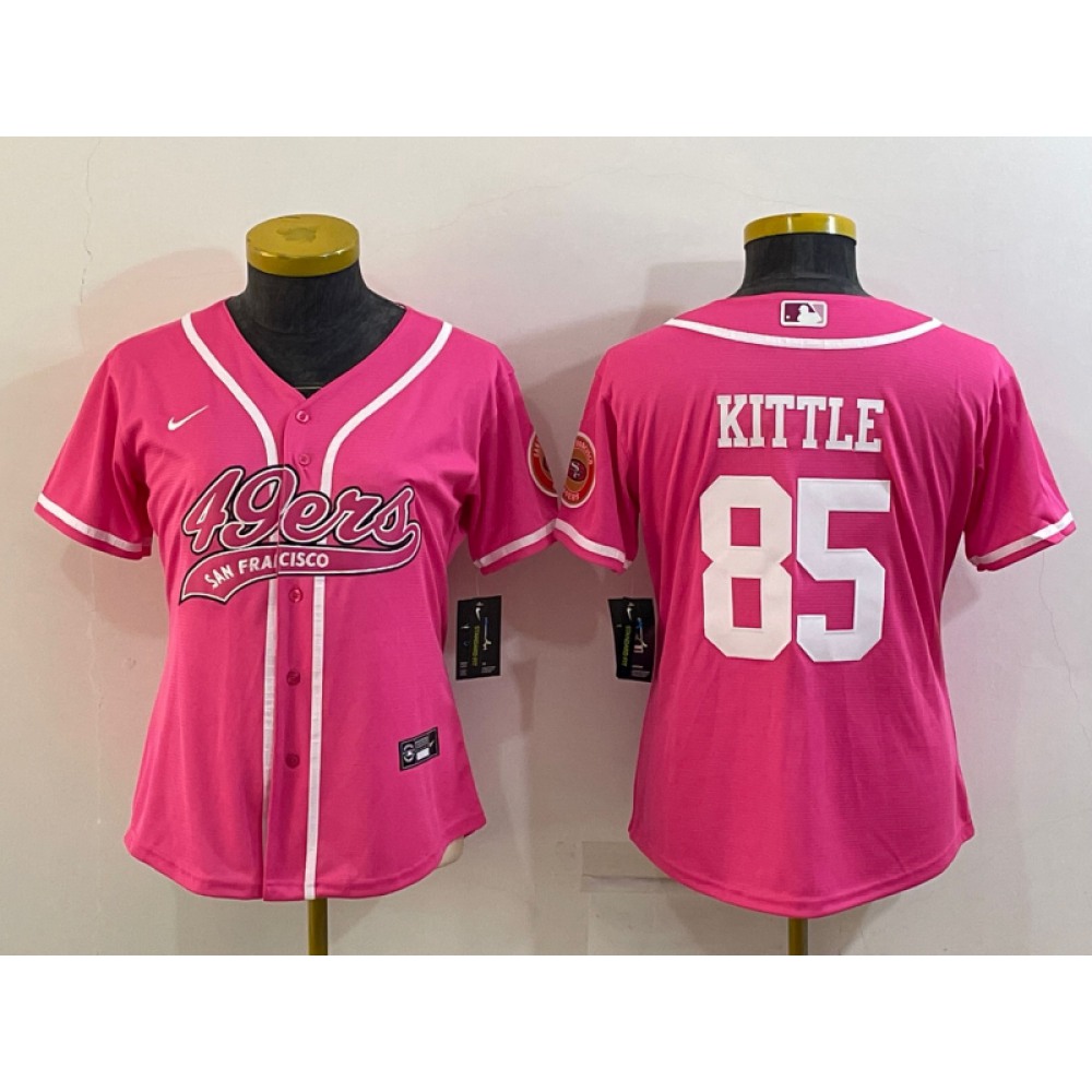Women's San Francisco 49ers #85 George Kittle Pink With Patch Cool Base Stitched Baseball Jersey(Run Small)