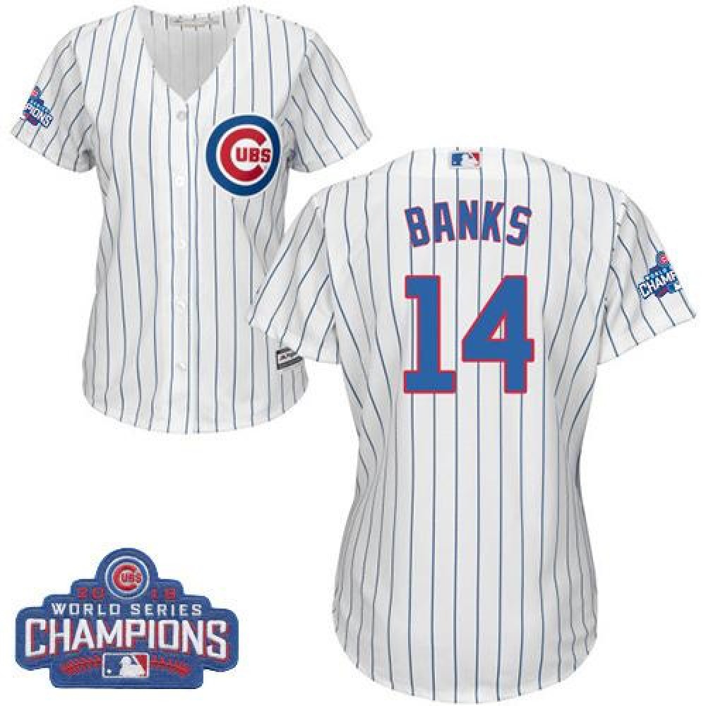 Cubs #14 Ernie Banks White(Blue Strip) Home 2016 World Series Champions Women's Stitched MLB Jersey