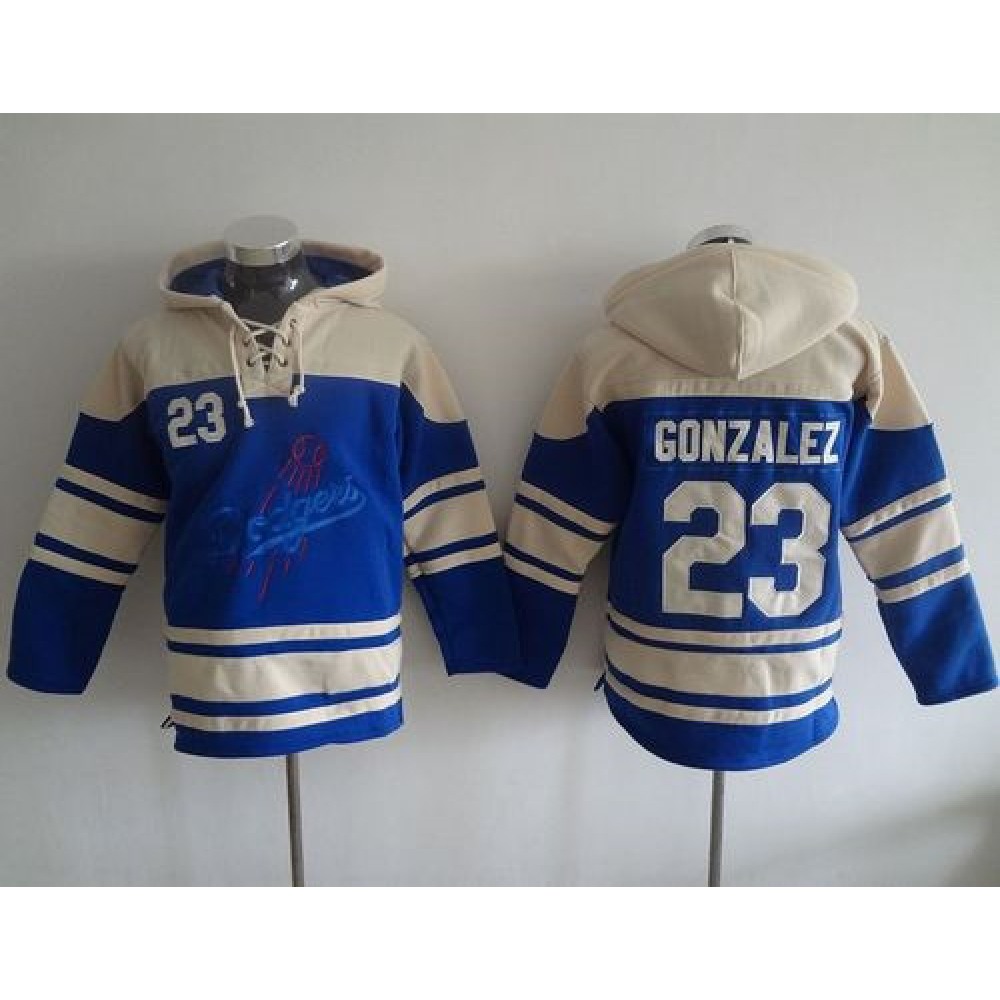 Dodgers #23 Adrian Gonzalez Blue Sawyer Hooded Sweatshirt MLB Hoodie