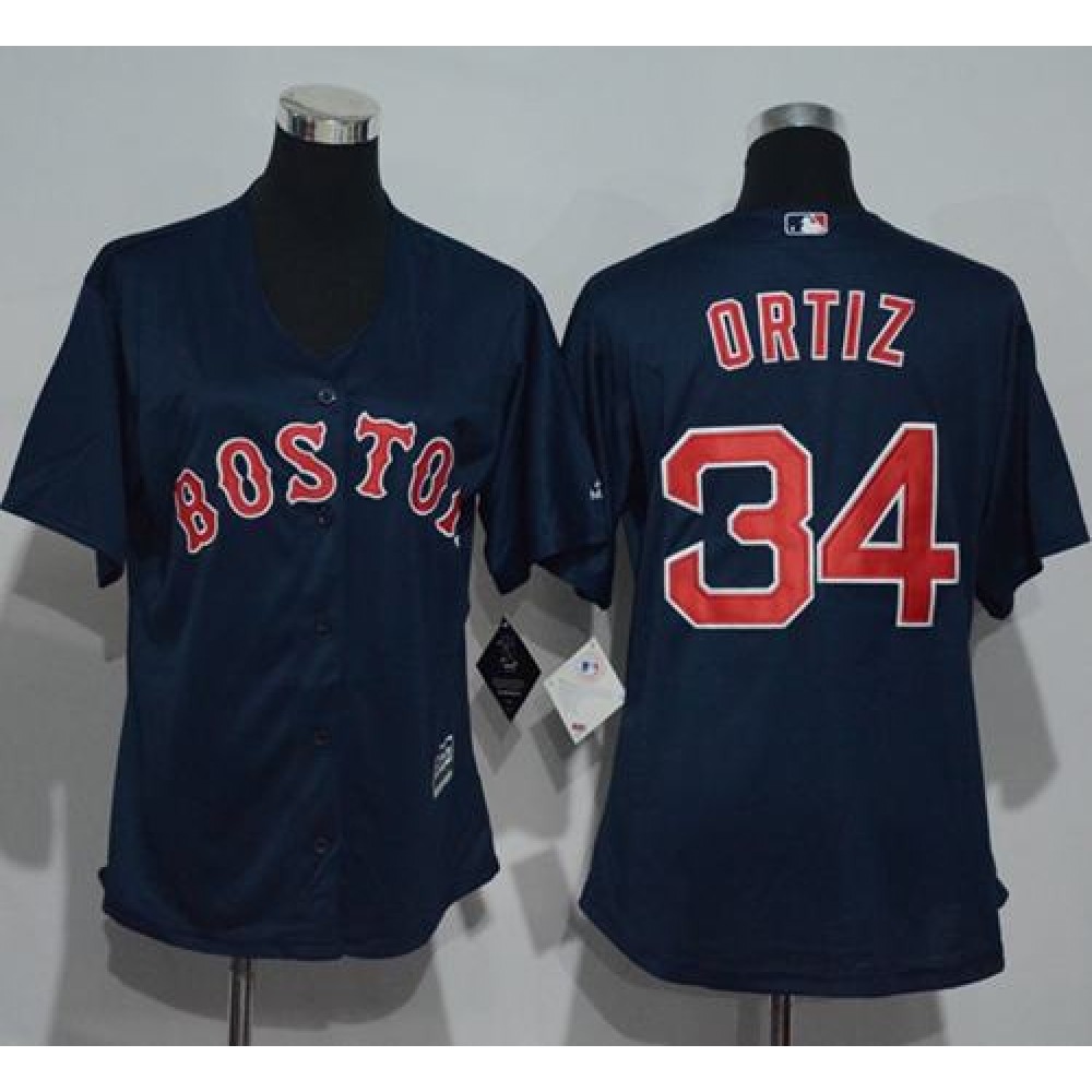 Red Sox #34 David Ortiz Navy Blue Women's Alternate Stitched MLB Jersey