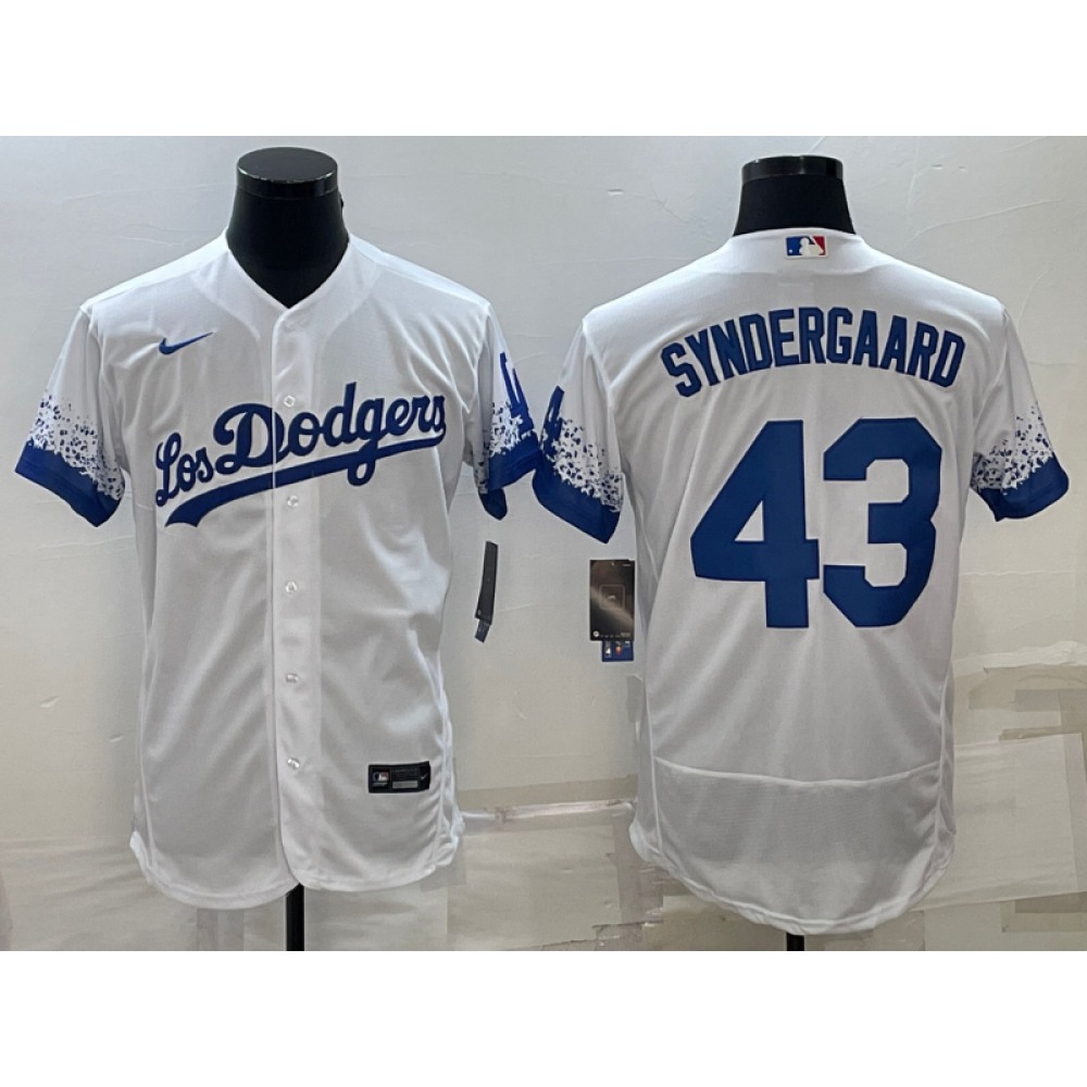 Men's Los Angeles Dodgers #43 Noah Syndergaard White City Connect Flex Base Stitched Baseball Jersey