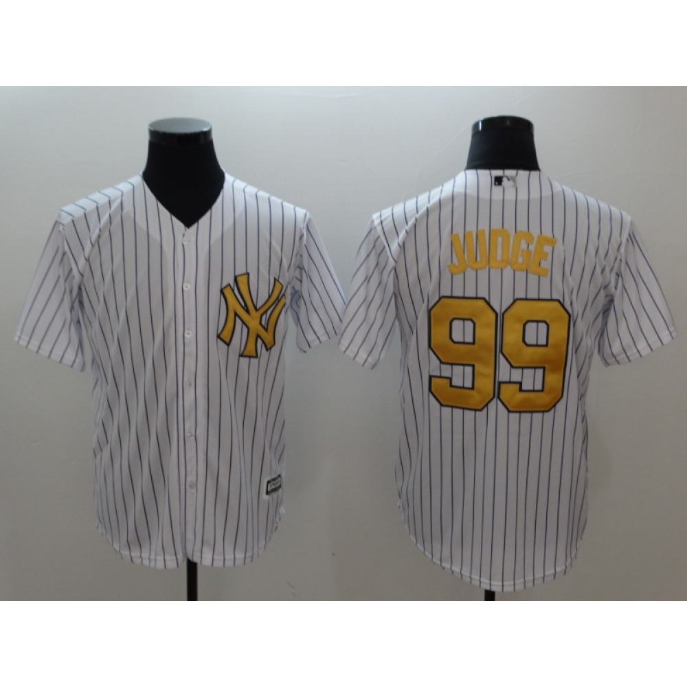 Men's New York Yankees #99 Aaron Judge White Gold Cool Base Stitched MLB Jersey