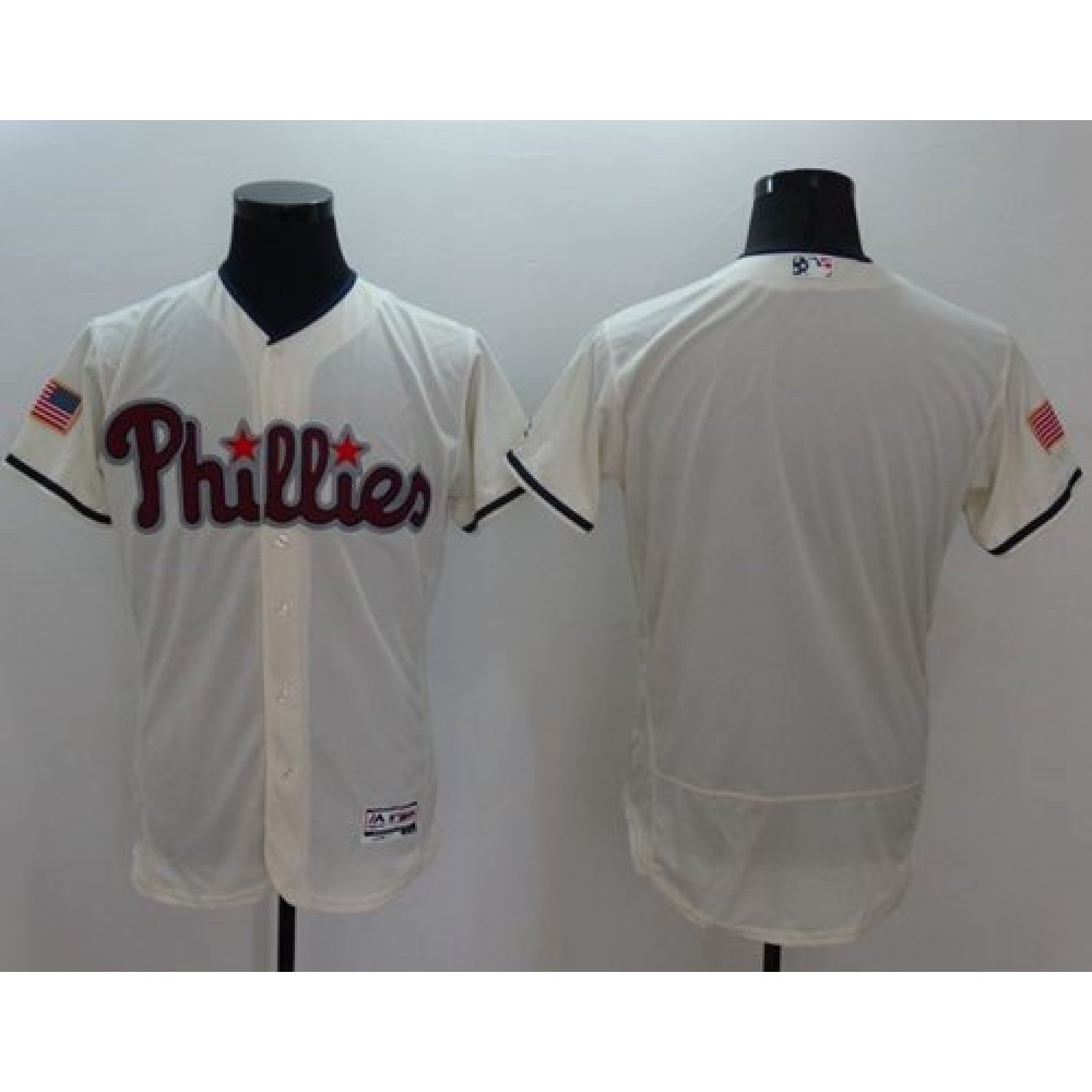 Phillies Blank Cream Fashion Stars & Stripes Flexbase Authentic Stitched MLB Jersey