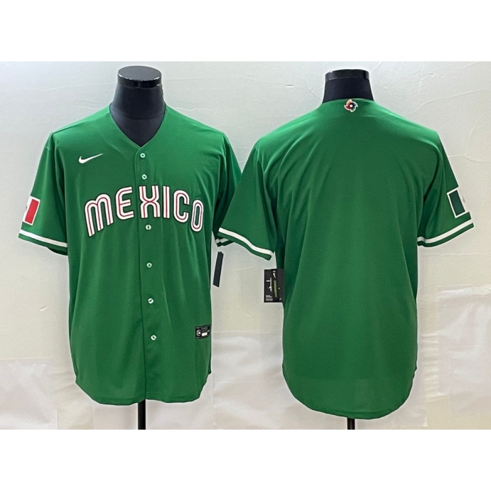 Men's Mexico Baseball Blank 2023 Green World Baseball Classic Stitched Jersey