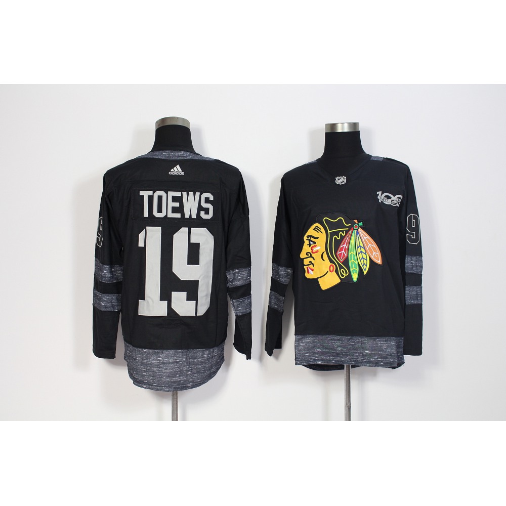 Men's Adidas Chicago Blackhawks #19 Jonathan Toews Black 1917-2017 100th Anniversary Stitched NHL Jersey