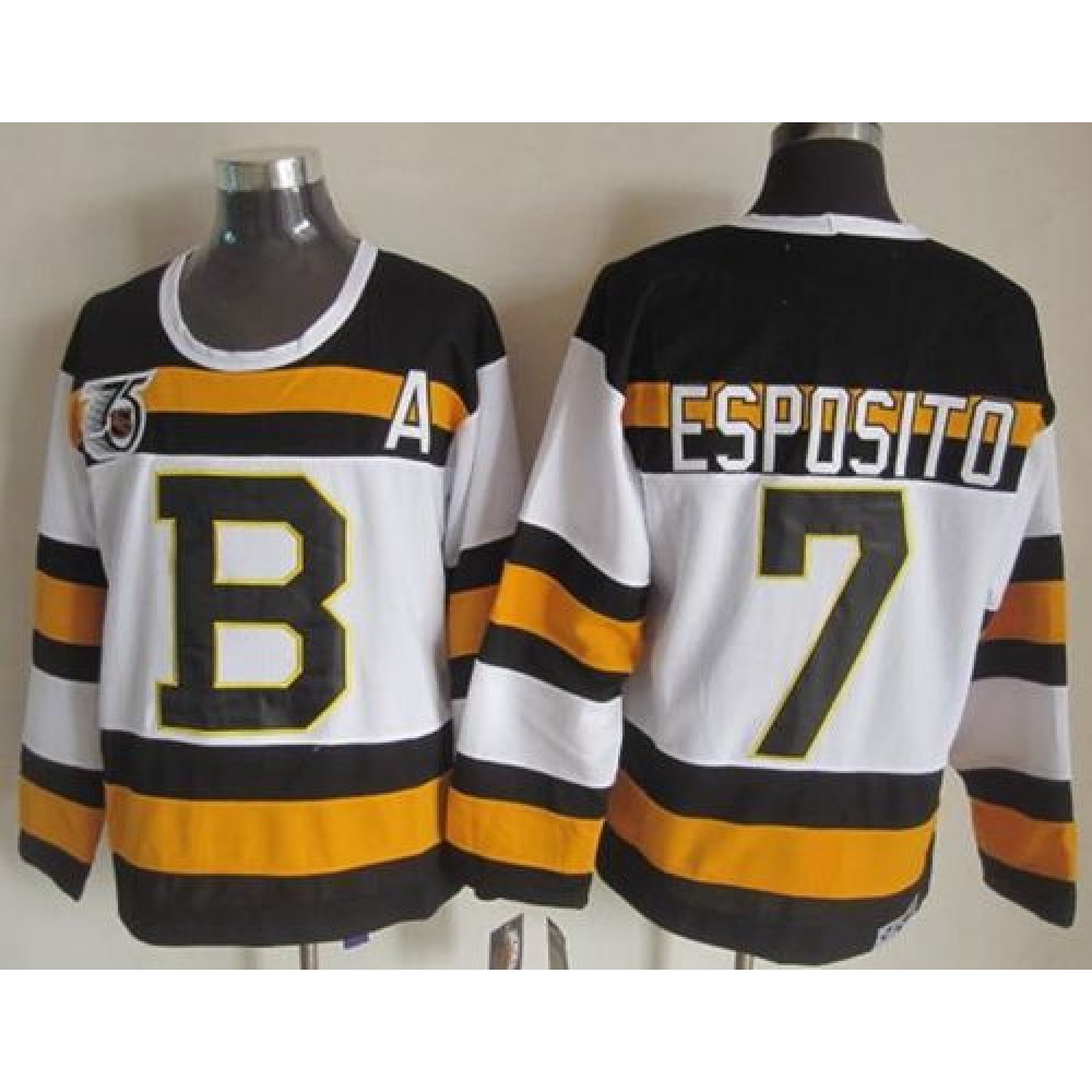 Bruins #7 Phil Esposito White CCM Throwback 75TH Stitched NHL Jersey