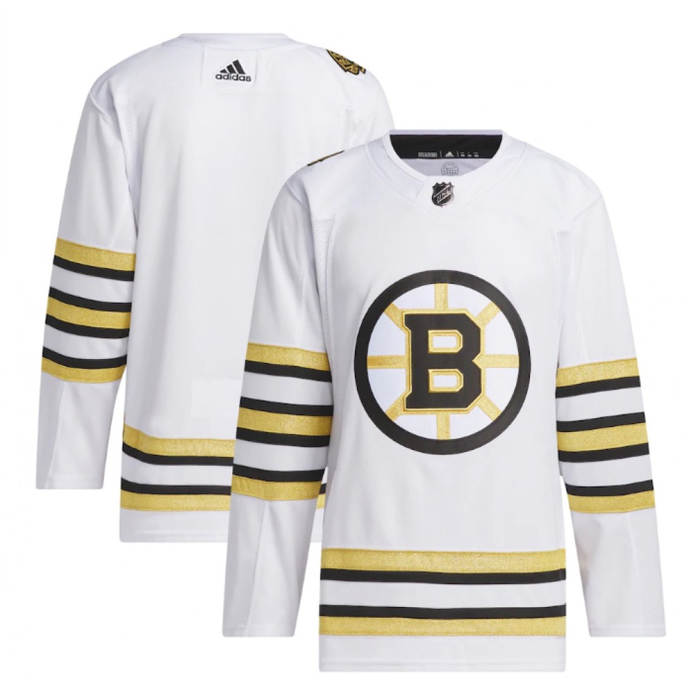 Men's Boston Bruins Blank White 100th Anniversary Primegreen Stitched Jersey