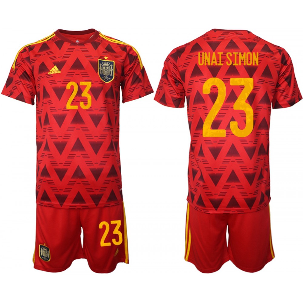 Men's Spain #23 Unai Simon Red Home Soccer Jersey Suit