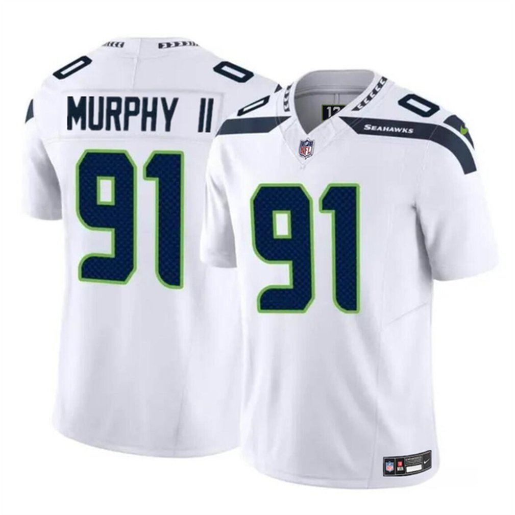 Men's Seattle Seahawks #91 Byron Murphy II White 2024 Draft F.U.S.E Vapor Limited Stitched Football Jersey