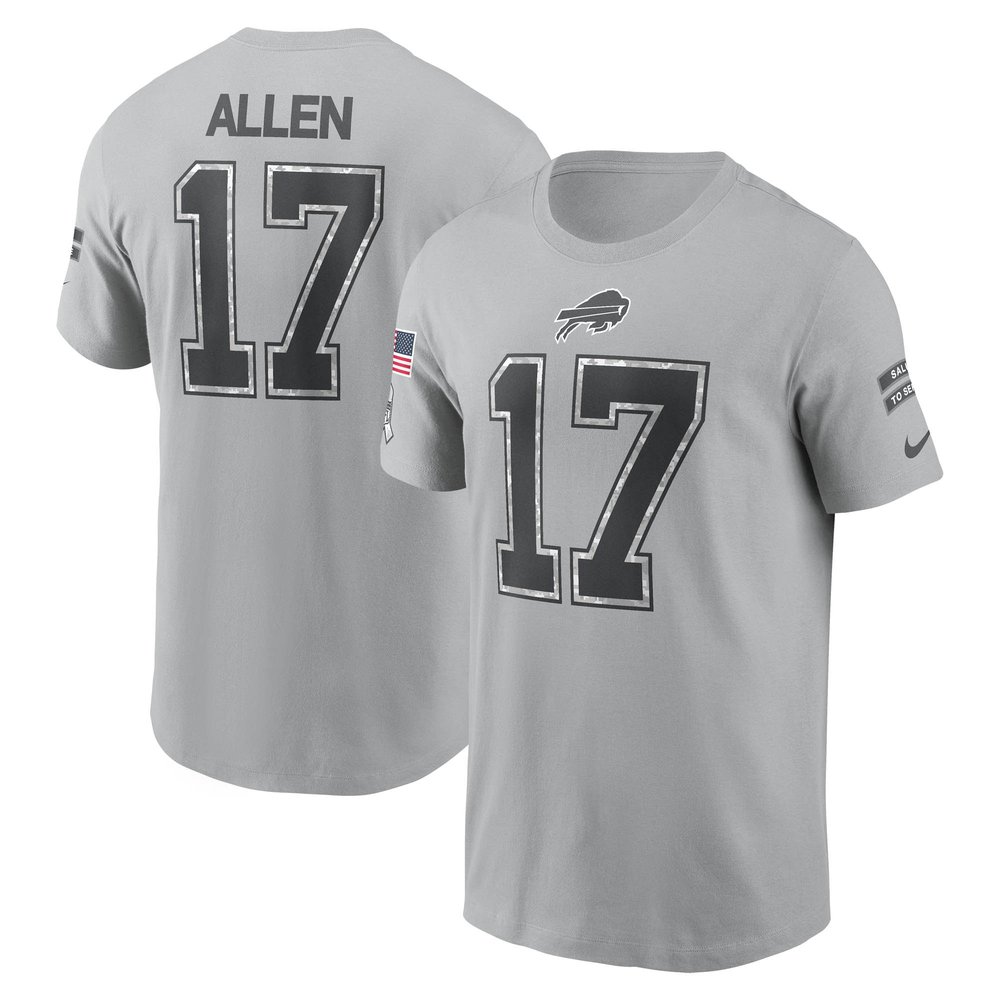 Men's Buffalo Bills Josh Allen Nike Gray 2024 Salute To Service Name & Number T-Shirt